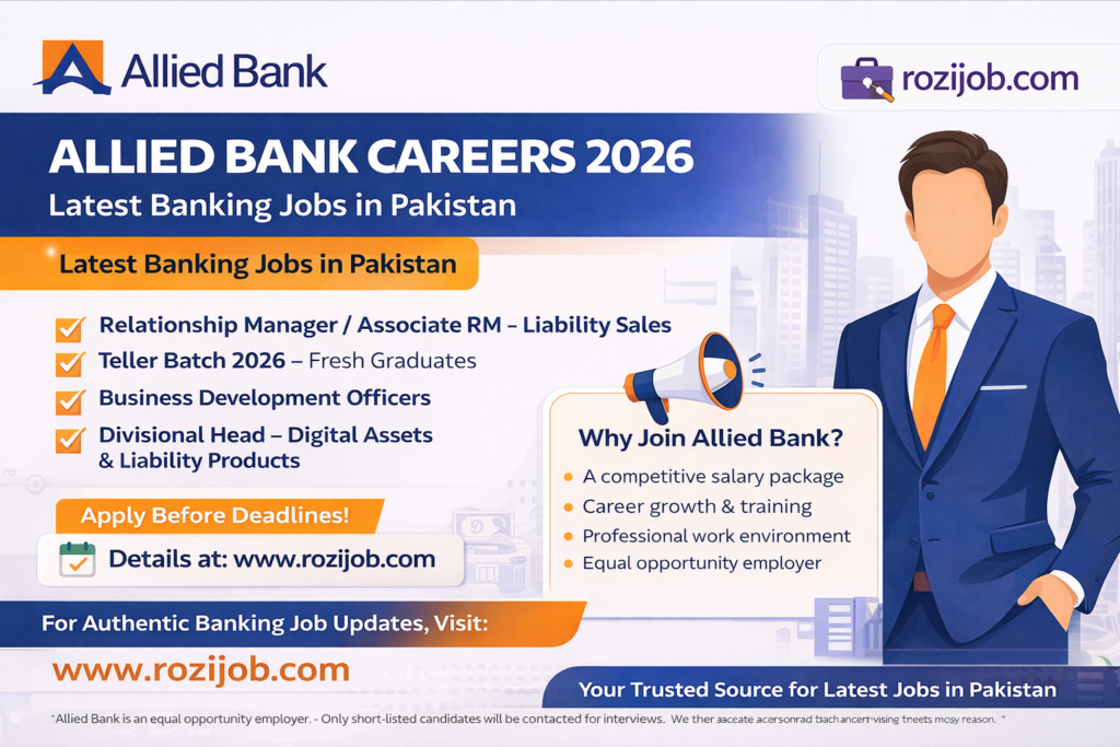If you’re planning to build a successful career in banking, this is the right time to explore new opportunities at Allied Bank Limited. One of Pakistan’s most trusted financial institutions, Allied Bank continues to expand its team by hiring talented, motivated, and career-oriented individuals across the country.