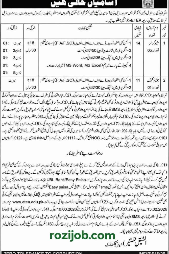 If you meet the eligibility criteria and are ready to move forward in your professional journey, this is the right time to apply for ETEA Stenographer Jobs in KPK 2026 and secure your future in a reputable government department.